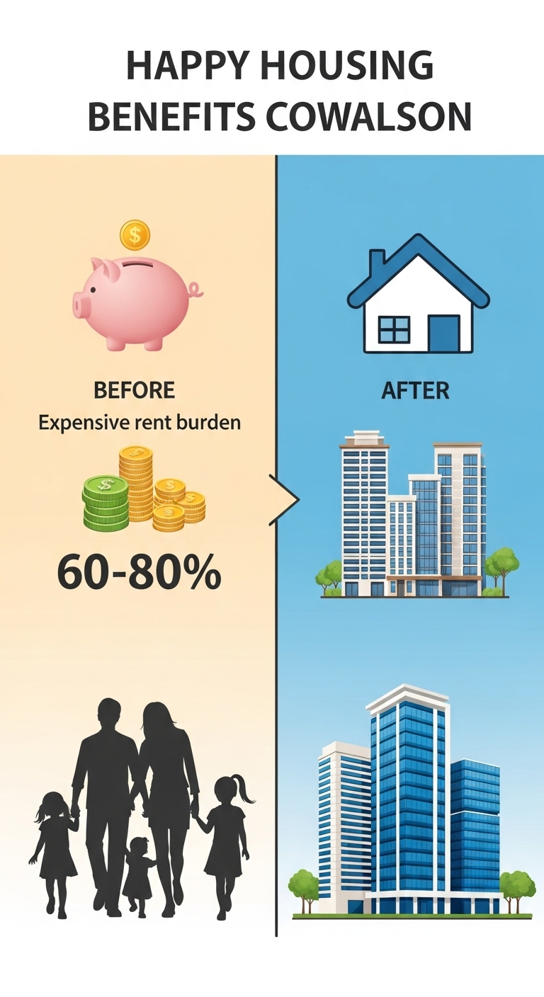 행복주택은 주거비 부담으로 고민하는 청년과 신혼부부에게 삶의 질을 개선할 수 있는 현실적인 해결책입니다. 시세 대비 저렴한 임대료로 장기간 안정적으로 거주하며, 절감된 주거비로 미래를 준비할 수 있는 절호의 기회입니다.