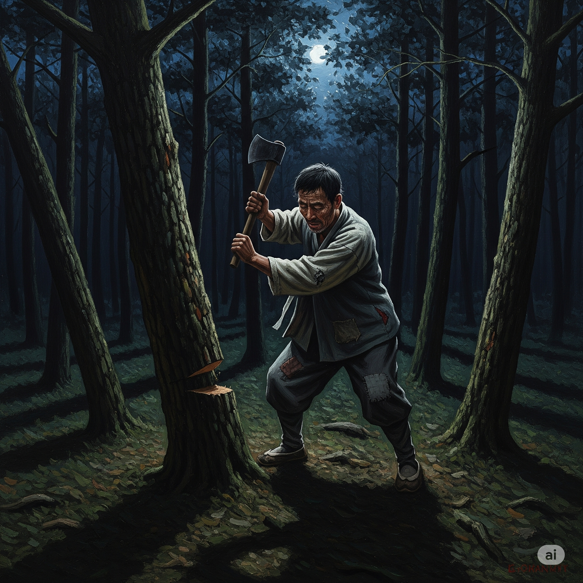 고요한 밤, 조선의 산에는 매서운 바람 소리 외에도 무언가 베어지는 소리가 들려왔습니다. 바로 생계를 위해 몰래 나무를 베는 농민들, 즉 '도벌꾼'들이었습니다. 춘궁기나 흉년이 들면 끼니조차 해결하기 어려웠던 조선 후기 농민들은 밤을 틈타 몰래 산에 올라 나무를 베고, 이를 땔감이나 건축 자재로 팔아 근근이 생계를 이어갔습니다.