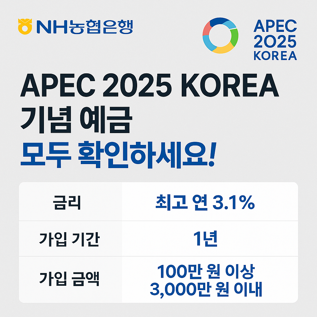 APEC 2025 KOREA 기념 예금 완전 정리! NH농협은행에서 출시된 특별 금융상품, 금리·가입조건·우대혜택·활용전략까지 한눈에 확인하세요.